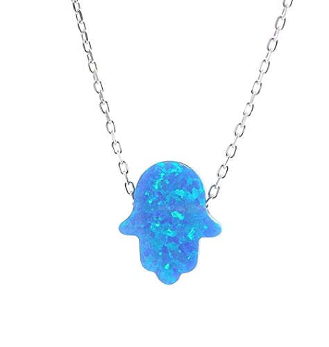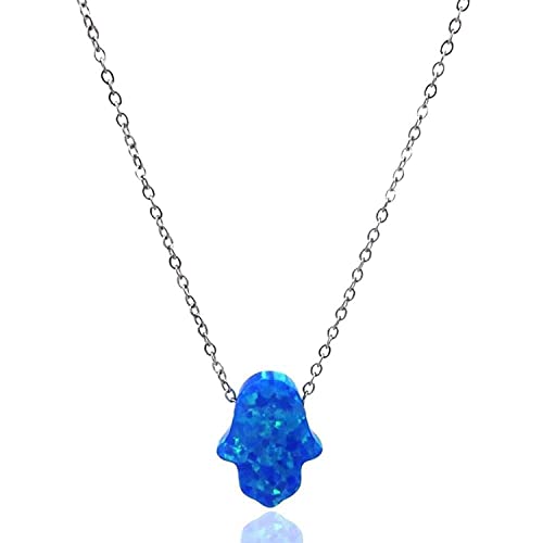 Other - عقد بقلادة من الستناليس ستيل بتصميم كف مرصع بحجر الاوبال الازرق، للنساء