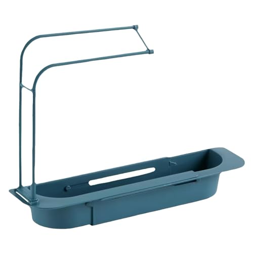Generic - رف صنبور - حامل فرشاة اطباق قابل للتمدد والتعديل مع مساحة تخزين اسفنجية، مثالي لتنظيم منطقة حوض المطبخ، سهل التركيب والتنظيف (لون تركواز)