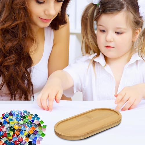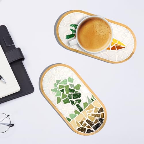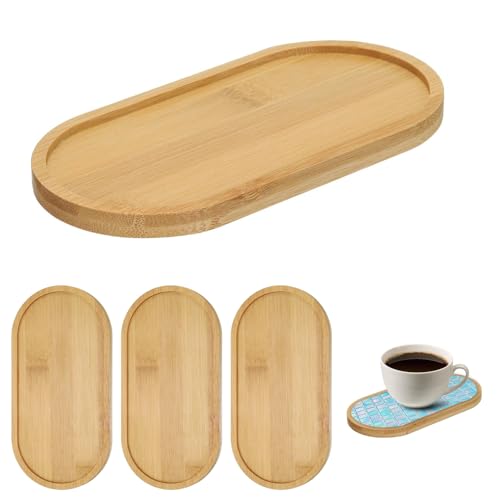 FAURAPMNG - قواعد اكواب موزاييك من الخيزران، قاعدة اكواب بيضاوية فارغة، صحن خشبي صغير من الخيزران، صحن نبات من الخيزران للمشروبات، حرف الفسيفساء اليدوية، ديكور المنزل والمكتب، 4 قطع من فورابمنج