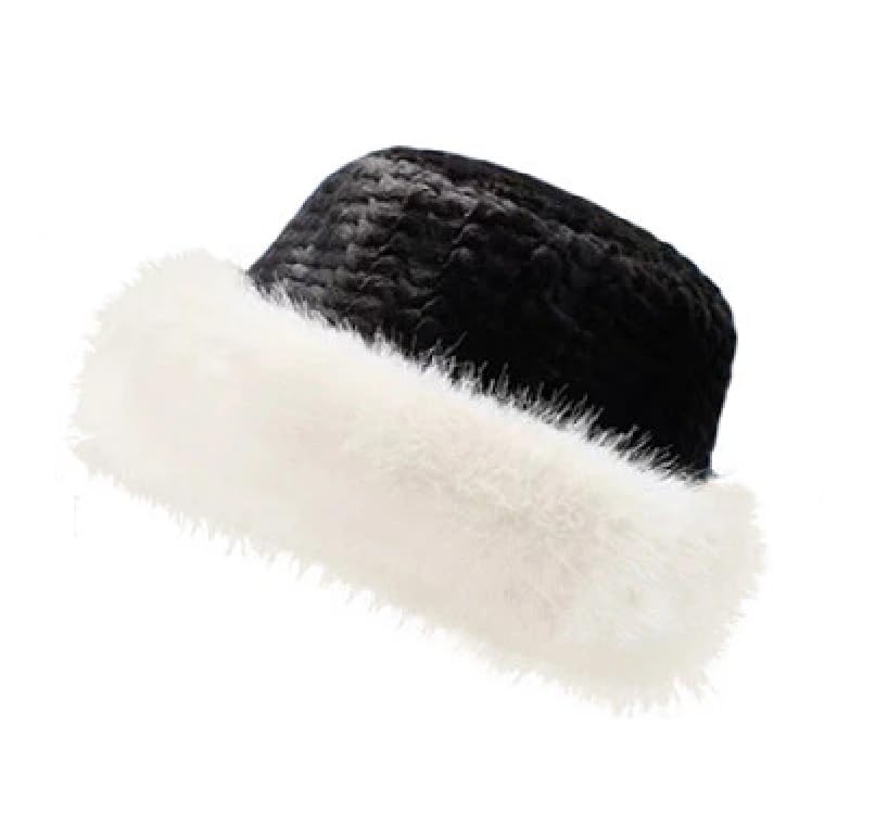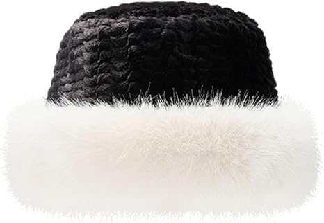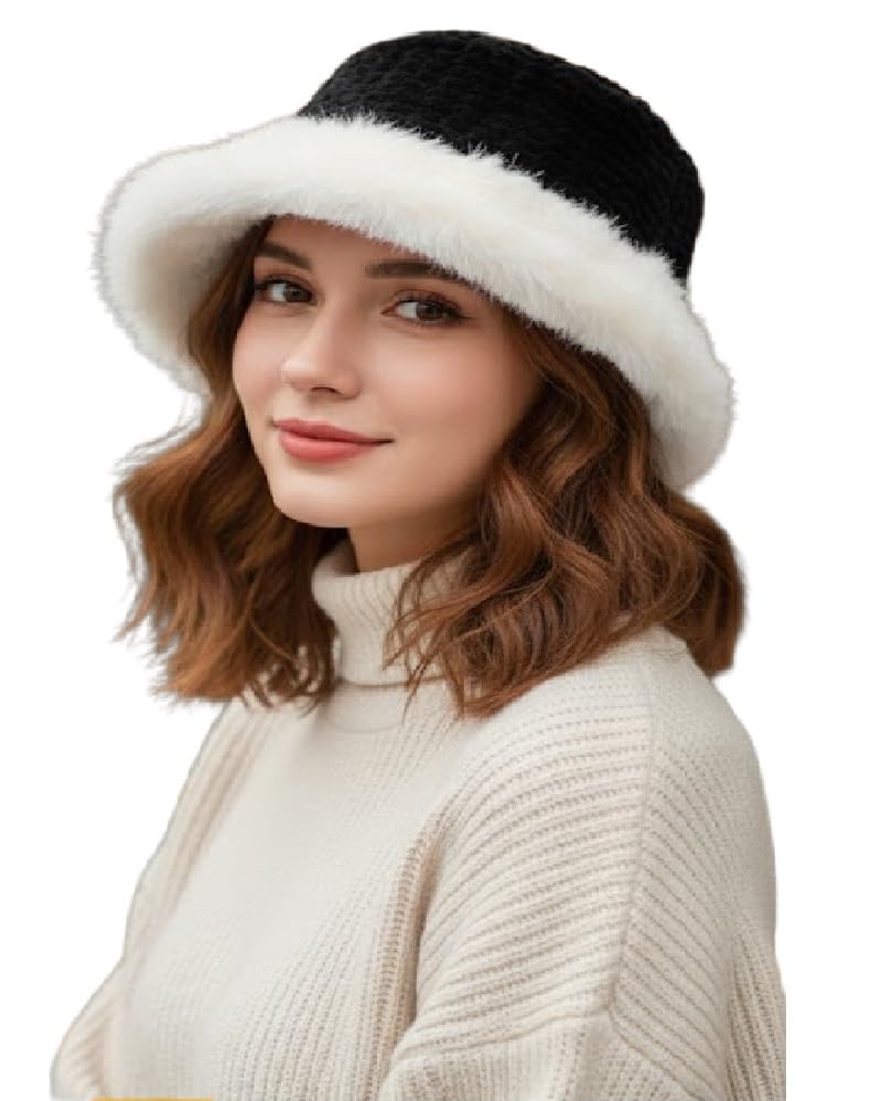 Generic - قبعات باكيت شتوية من الفرو الصناعي للنساء قبعة دافئة من الفرو المنفوش قابلة للتعديل للاستخدام اليومي والكاجوال والرياضة والسفر والتزلج لون اسود و ابيض