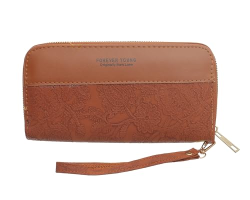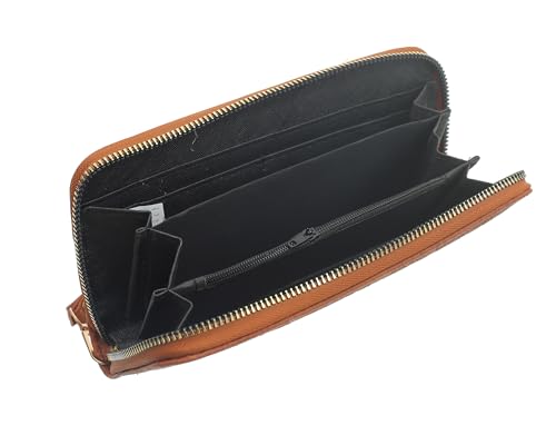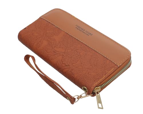 Generic - محفظة كبيرة مستطيلة ثنائية الطي من الجلد الصناعي تحتوي على جيب بسوستة وجيوب داخلية مقسمة لكروت العمل وتتضمن حزام يد بتصميم عملي للنساء - لون هافان