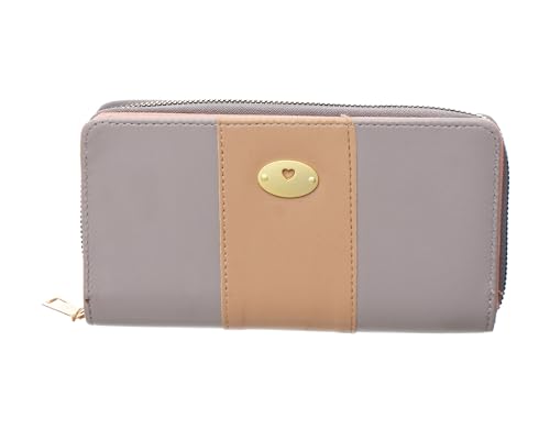 Generic - محفظة كبيرة مستطيلة جلد صناعي مقسمة من الداخل بجيب بسوستة وجيوب لبطاقات العمل بتصميم قلب بسيط للنساء - لون رمادي وبيج