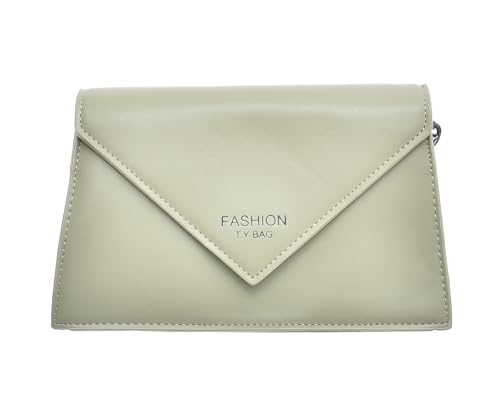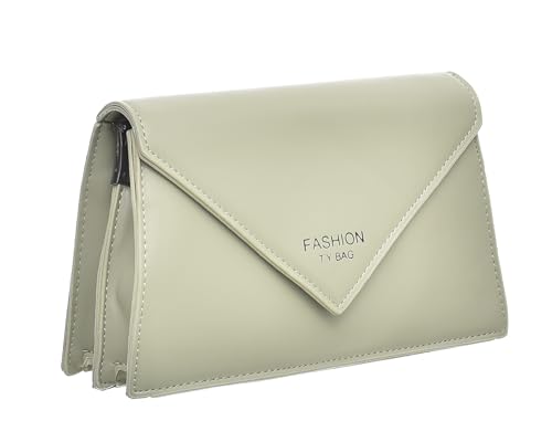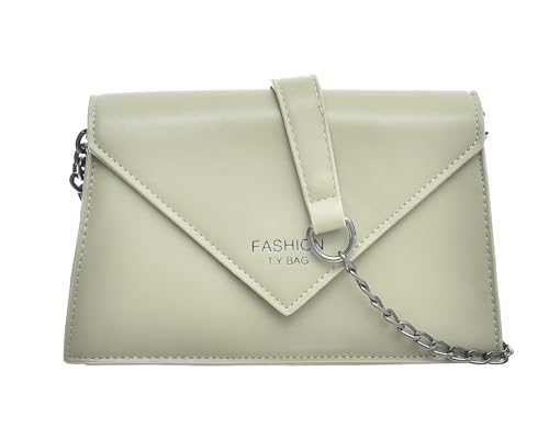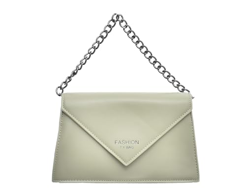 Generic - شنطة يد جلد صناعي متوسطة الحجم بتصميم عصري مقسمة إلى جزأين داخليا مع حزام معدن طويل وسوستة للنساء - أخضر مينت وأسود