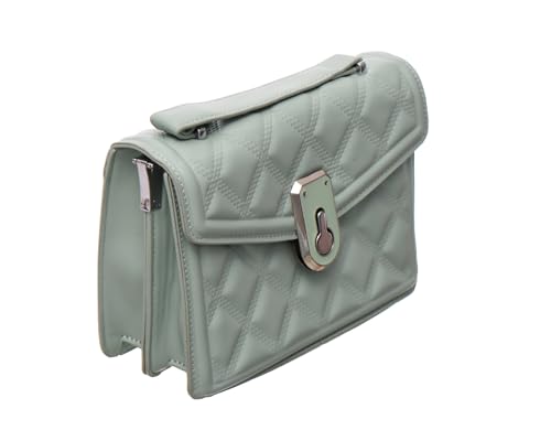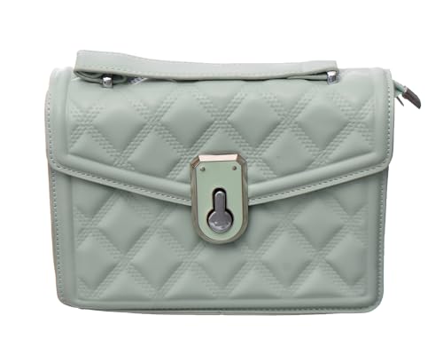 Generic - شنطة يد مستطيلة من الجلد الصناعي مقسمة من الداخل بتصميم معين بارز تحتوي على حزام كتف طويل مع مقبض قوي وقفل دوار للنساء، لون مينت جرين