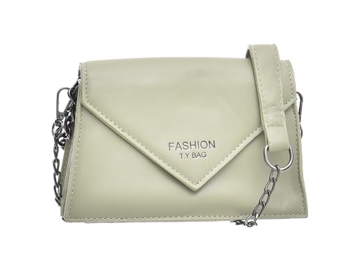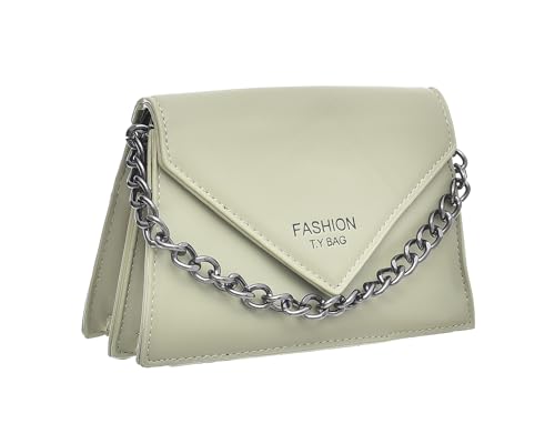 Generic - شنطة يد صغيرة من الجلد الصناعي بتصميم حديث مقسمة إلى جزأين من الداخل مع حزام معدني طويل وسوستة للنساء - أسود