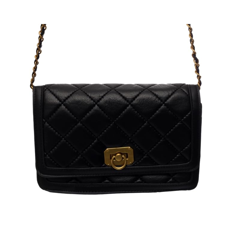 Generic - شنطة كروس مبطنة للنساء من الجلد الصناعي مع حزام كتف سلسلة للاستخدام اليومي، أسود