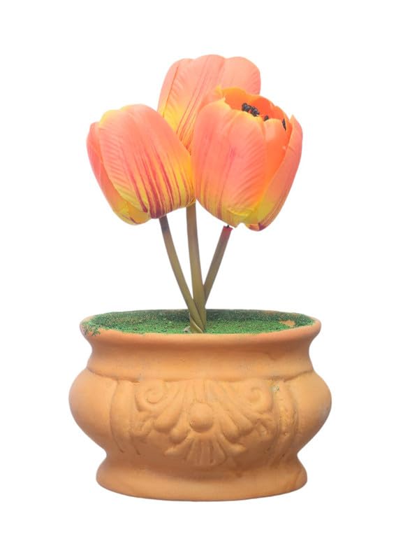 Generic - مزهرية زهور من الفخار الصناعي لديكور المنزل مقاس S - اصفر وزهري
