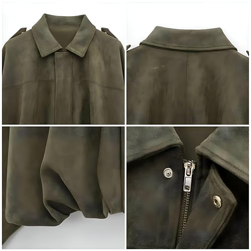 Generic - جاكيت منفوخ من الشمواه الصناعي - ملابس خارجية انيقة للنساء مع سحاب اغلاق وياقة مطوية واكمام طويلة، مثالي للخريف والشتاء واي 2 كيه، معطف كاجوال خفيف الوزن