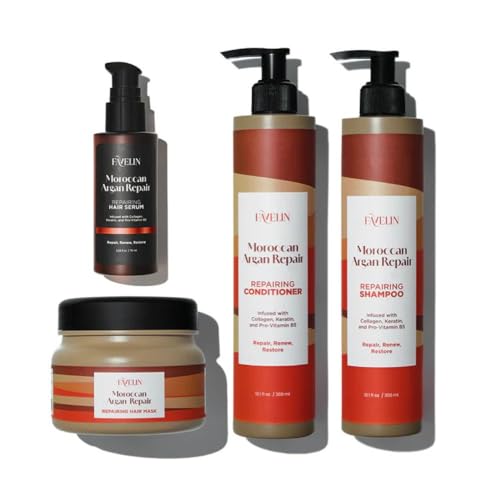 Favelin - مجموعة إصلاح ارجان اكسترا من فافلين 300 مل | شامبو 300 مل + بلسم 300 مل + قناع شعر 300 مل + سيروم شعر 75 مل | مع زيت الارجان والكولاجين | عناية فائقة للشعر التالف