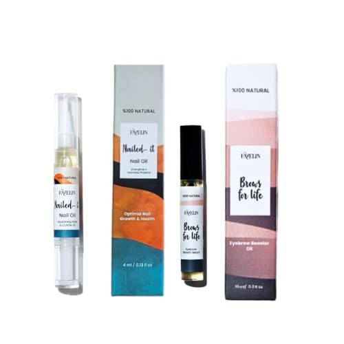 Favelin - زيت أظافر طبيعي 4 مل وسيروم نمو الحواجب 10 مل مع زيوت طبيعية وفيتامين E لتعزيز صحة الأظافر وجمالها ونمو الحواجب بشكل طبيعي من فافلين