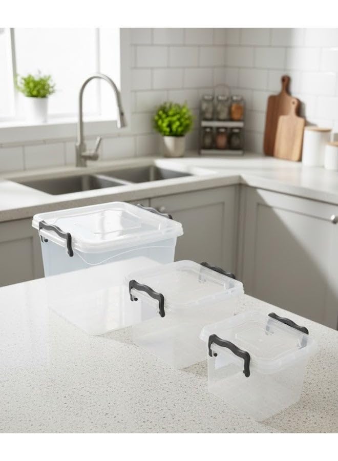 Generic - طقم علب تخزين طعام محكمة الغلق مع اغطية بمشبك من فافيلا، 3 قطع، مقاسات مختلفة - شفاف - كود 1591
