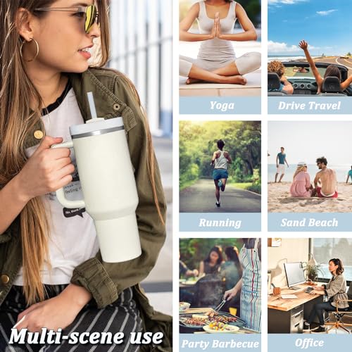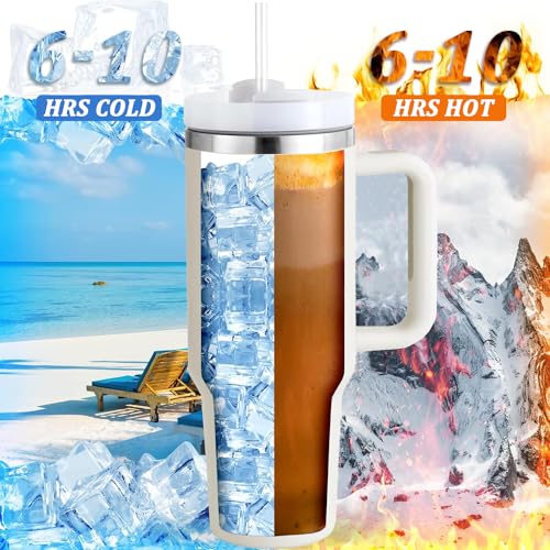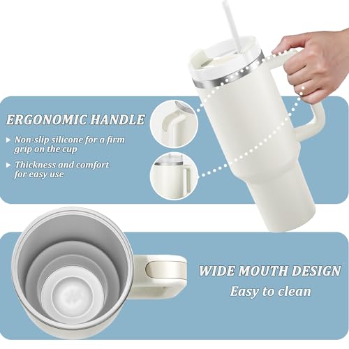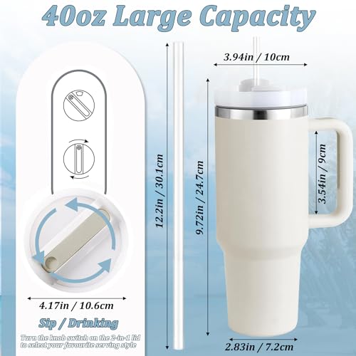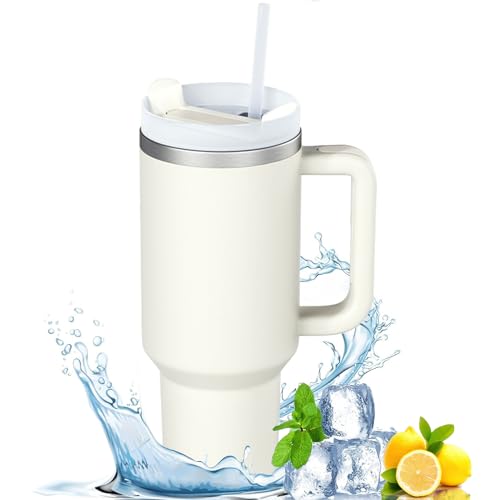 Favuit - كوب شرب بغطاء وشفاطة من فافويت، زجاجة مياه معزولة بتفريغ الهواء من الفولاذ المقاوم للصدأ بسعة 1.18 لتر، مج قهوة مثلجة، كوب سفر للمشروبات الساخنة والباردة والماء المثلج والقهوة وعصائر السموذي (بيج)