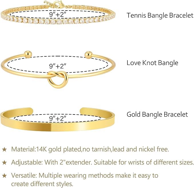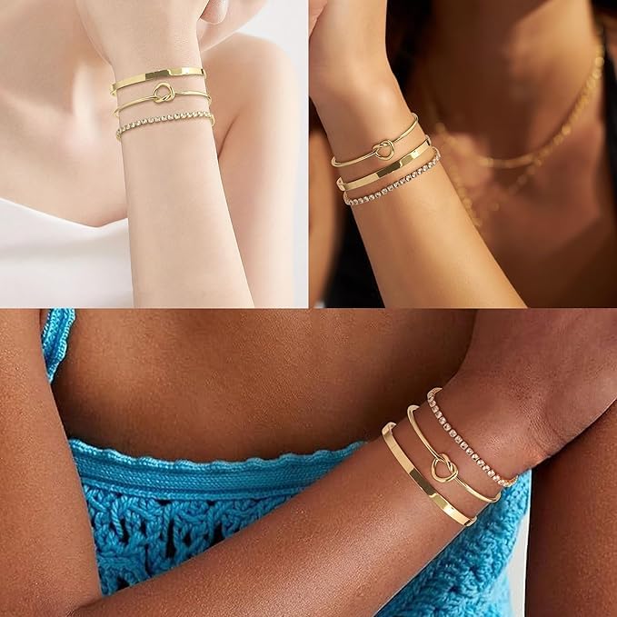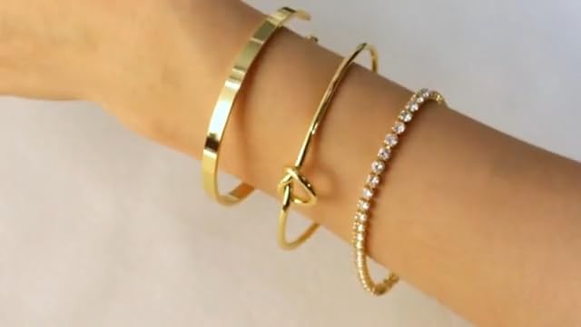 Fayrouz Jewellery - مجموعة اساور تنس مطلية بالذهب عيار 18 قيراط من فيروز جوليري عقدة حب قابلة للتعديل عصرية للنساء