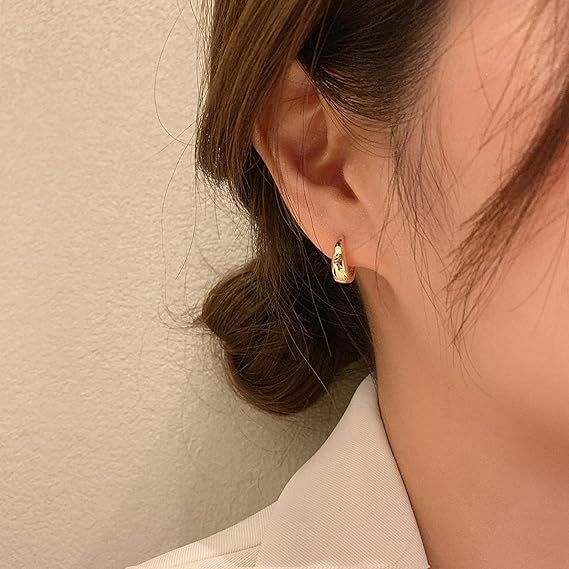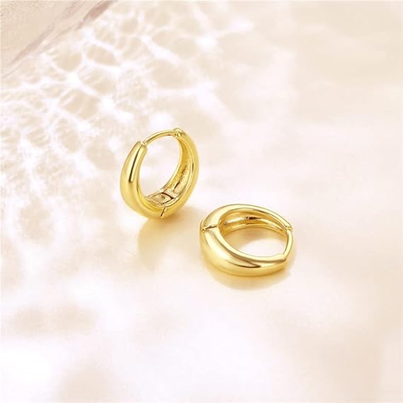 Generic - اقراط ذهبية مصممة علي شكل حلقة دائرية مطلية بالذهب عيار 18 قيراط للنساء من فيروز جوليري - مقاس 14 ملم 020 النحاس بدون أحجار كريمة