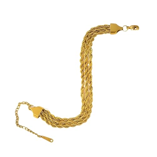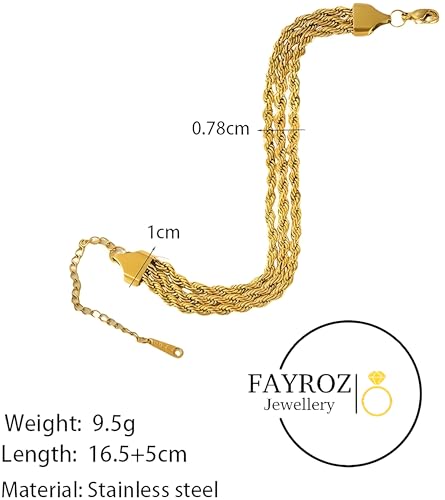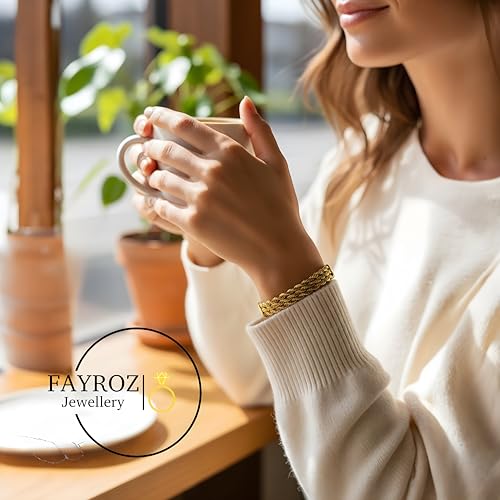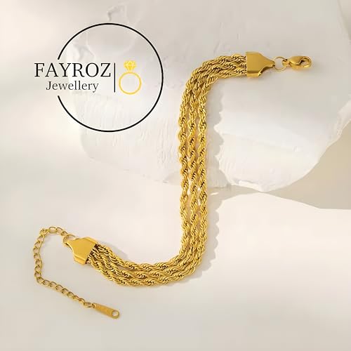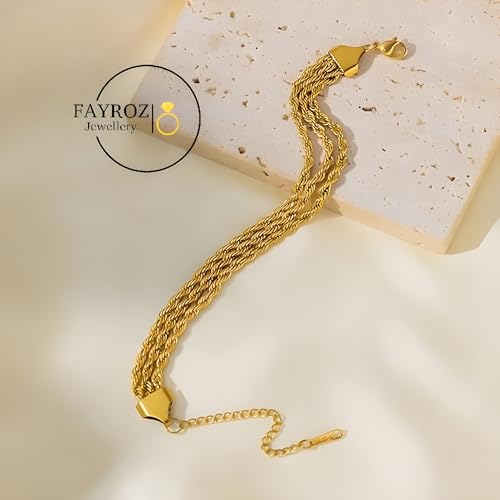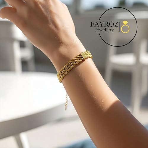 FAYROZ JEWELLERY - سوار مضفر مكون من 3 طبقات من ستانلس ستيل عالي الجودة مطلي بالذهب عيار 18 قيراط – تصميم فاخر وأنيق مقاوم للصدأ والخدوش – إكسسوار راقٍ يضفي لمسة فخامة . من فيروز جوليري.