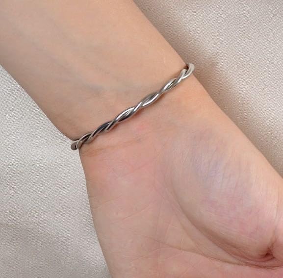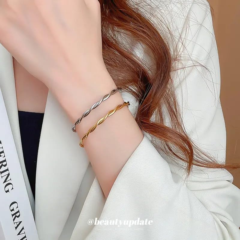 Fayrouz Jewellery - سوار ملتوي من الستانلس ستيل 316L مطلي بالذهب عيار 18 قيراط اساور للنساء بدلاية قابلة للتعديل بسيط ورفيع بخطاف عصري وسهل الارتداء من فيروز جوليري
