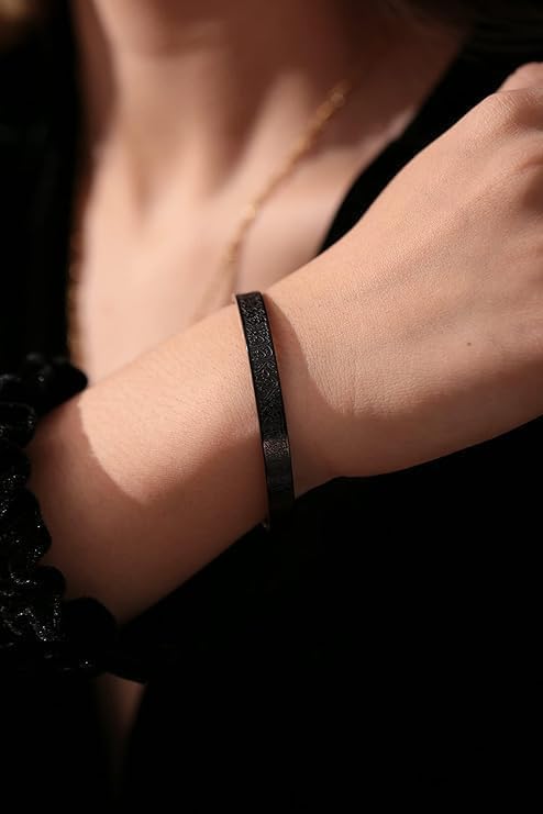 عام - اساور اية الكرسي للرجال والنساء من فيروز جوليري، سوار مفتوح من الستانلس ستيل بتصميم مفتوح للعيد المبارك، هدايا رمضان لجميع الناس (اسود)