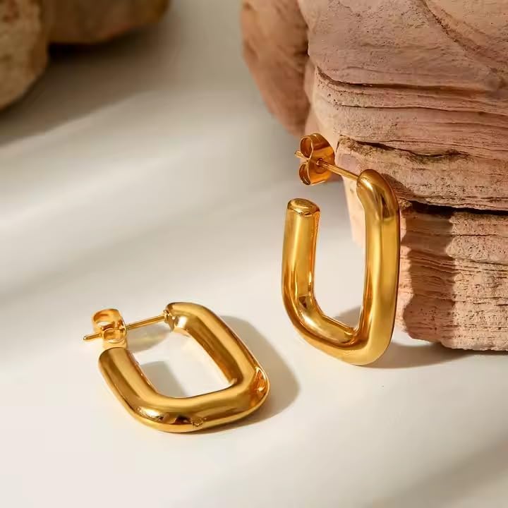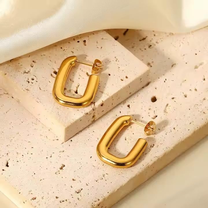 Fayrouz Jewellery - اقراط حلقية مطلية بالذهب عيار 18 قيراط من الستانلس ستيل الافضل مبيعا للنساء ، مكتنزة لا تسبب الحساسية مفتوحة خفيفة الوزن عصرية يناسب حميع الاشخاص من فيروز جوليري