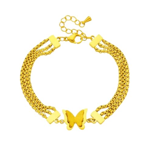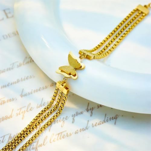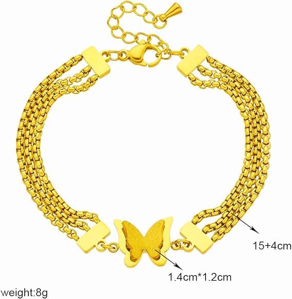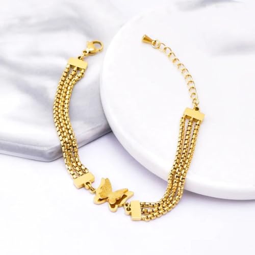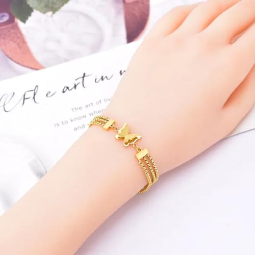Fayrouz Jewellery - سوار فراشة ذو طبقتين أنيق للنساء، ستانلس ستيل المقاوم للصدا مطلي بالذهب عيار 18، مجوهرات فاخرة مضادة للحساسية، مثالي للحفلات والولائم، جاهز كهدية - للنساء من فيروز جوليري.