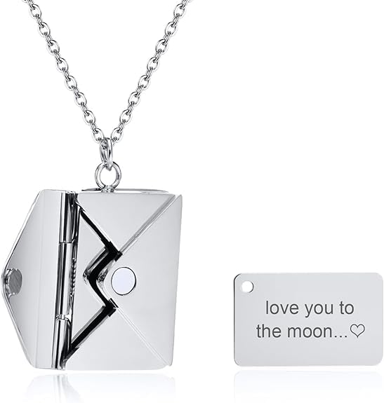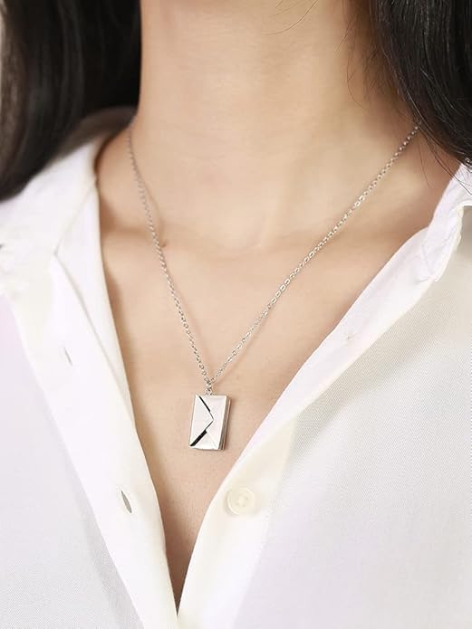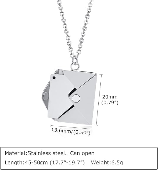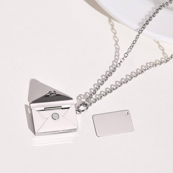 Fayrouz Jewellery - قلادة بتعليقة ظرف رسالة حب قابلة للحفر حسب رغبتك - من ستانلس ستيل. الشخصي، أسلوب أنيق للرجال والنساء - هدية مثالية لعيد الحب، عيد الميلاد، أو الكريسماس. من فيروز جوليري .