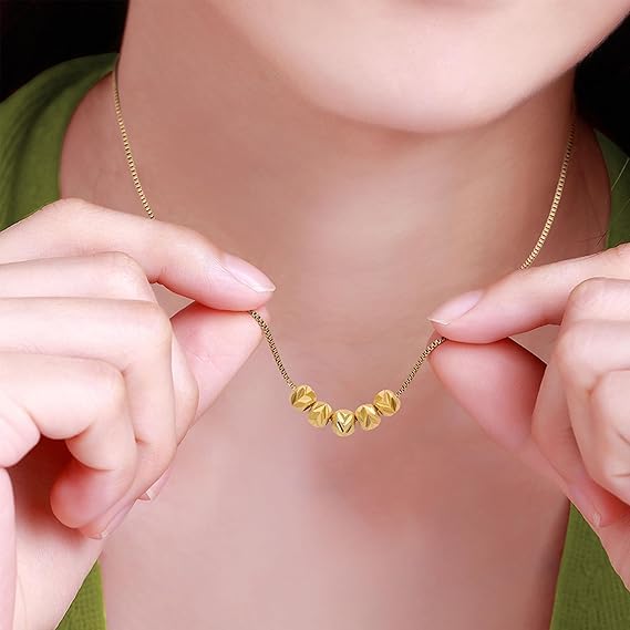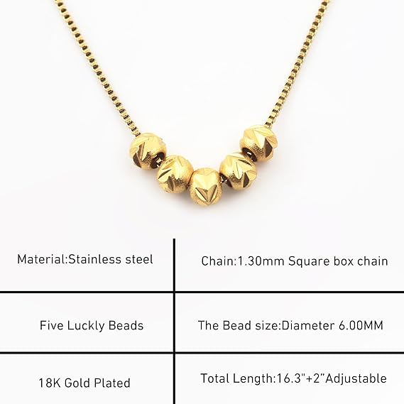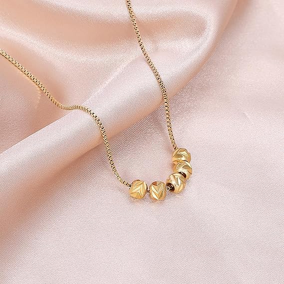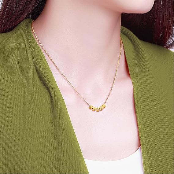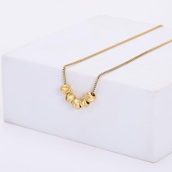 Fayrouz Jewellery - قلادة خرز لاكلي ، سلسلة انيقة على شكل 5 كورة متصله ، سلسلة ذهبية أنيقة، ستانلس ستيل مطلية بالذهب عيار 18 قيراط، هدايا للنساء والفتيات، عيد الميلاد، الذكرى السنوية، الكريسماس،من فيروز جوليري