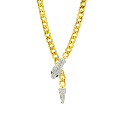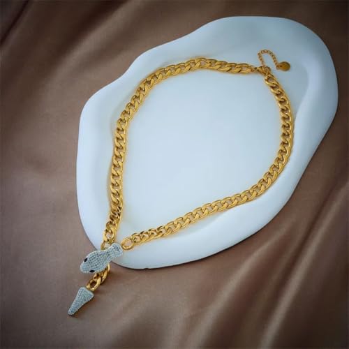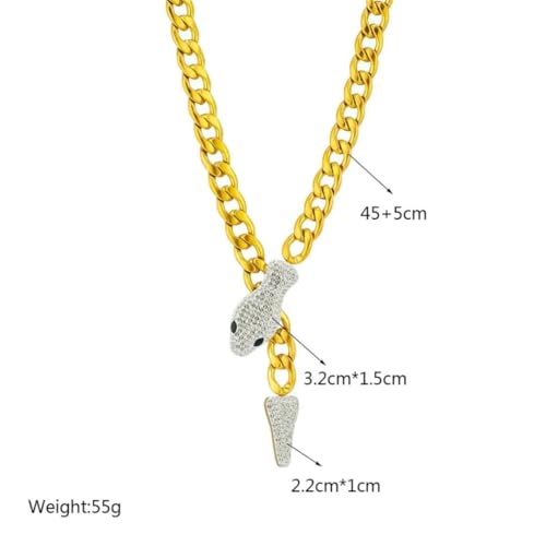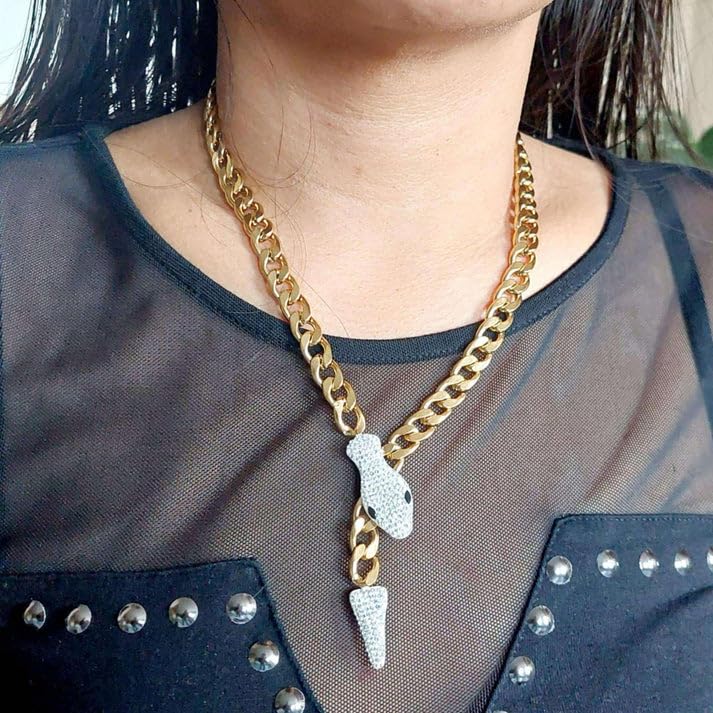 FAYROZ JEWELLERY - قلادة فاخرة على شكل ثعبان مرصعة بأحجار الراين اللامعة من الستانلس ستيل عالي الجودة مطلية بالذهب عيار 18 قيراط، تصميم أنيق يجمع بين الجرأة والفخامة، تضيف بريقًا جذابًا من فيروز جوليري