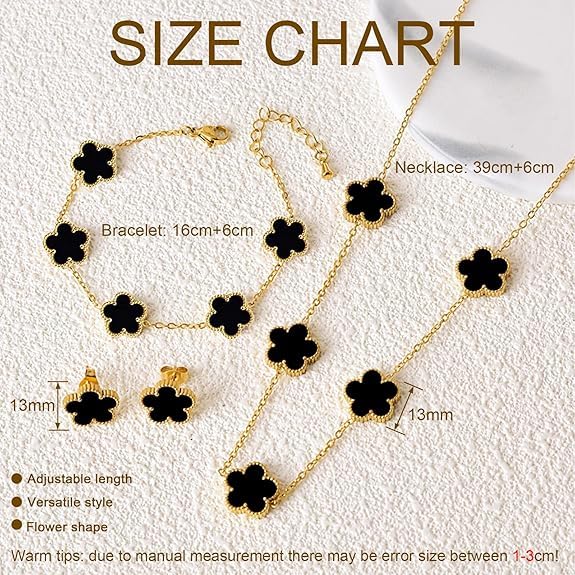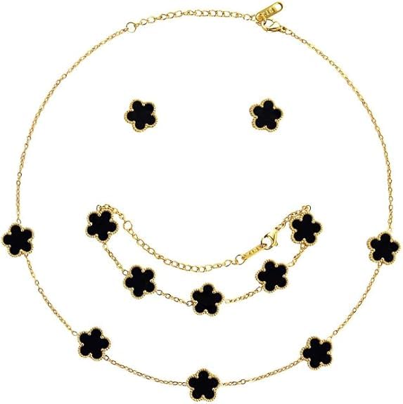 Fayrouz Jewellery - طقم مجوهرات للنساء والفتيات ، مصنوع من الستانلس ستيل المطلي بالذهب عيار 18 قيراط على الوجهين، مكون من قلادة واقراط وسوار قابل للتعديل، هدايا عيد الميلاد، 3 قطع. من فيروز جوليري