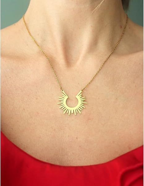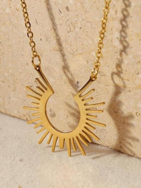 Fayrouz Jewellery - عقد ضيق بدلاية بتصميم بسيط علي شكل الشمس وراقي للاستخدام اليومي للنساء، قلادة لطيفة مطلية بالذهب عيار 18 قيراط بتصميم زهرة الشمس المشرقة، انيقة من فيروز جوليري .