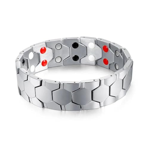 Fayrouz Jewellery - سوار مغناطيسي للجنسين من مجوهرات فيروز، سوار طاقة مغناطيسي من الفولاذ المقاوم للصدأ 316L مكون من 4 عناصر، قوة فائقة 3500 جاوس يناسب جميع الناس