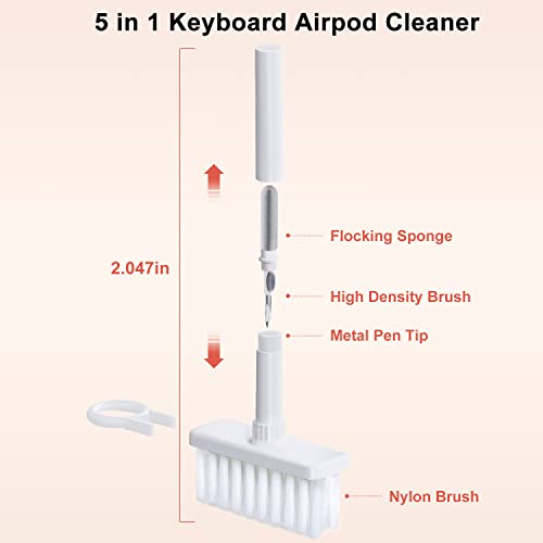 Vafodo - فرشاة تنظيف لوحة المفاتيح 5 في 1 متعدد الوظائف للكمبيوتر وسماعات بلوتوث واللابتوب وعدسة الكاميرا، أبيض فبورايز