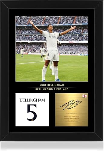 Generic - عرض صور مؤطرة بحجم من تصميم جود بيلينجهام نادي إف سي - توقيع رقمي مُعاد إنتاجه - هدية لمشجعي ريال مدريد اسود 20*30 سم