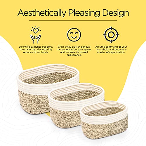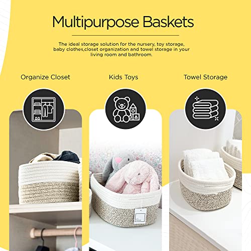 FCG Home - مجموعة سلال تخزين من نسيج محبوك من الحبال، سلال صغيرة من الحبال لرفوف الحمام وصناديق تنظيم الحضانة لألعاب الأطفال من اف سي جي هوم، 3 قطع (بني وأبيض)