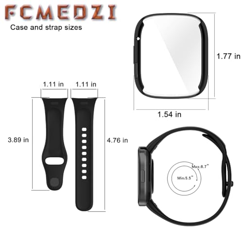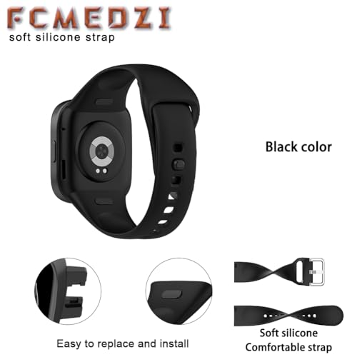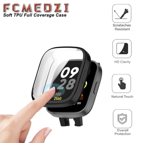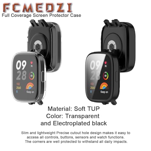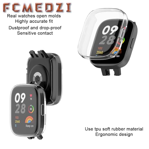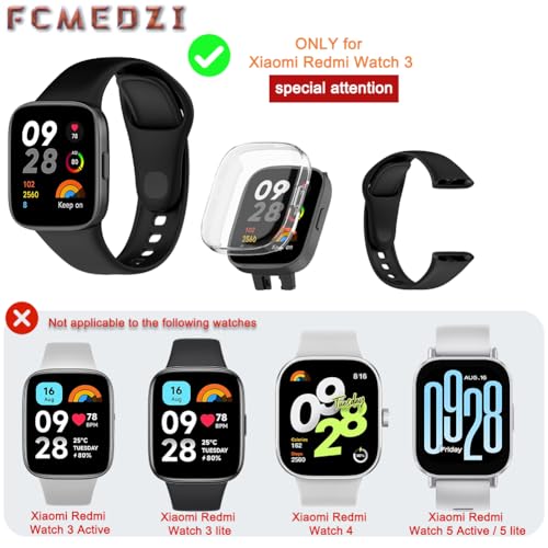 FCMEDZI - حافظات وسوار متوافق مع ساعة شاومي ريدمي 3 من اف سي ام اي دي زد اي، ملحقات ساعة ذكية بتغطية كاملة من البولي يوريثين الحراري الناعم وسوار سيليكون ناعم (عبوة من 2+1)