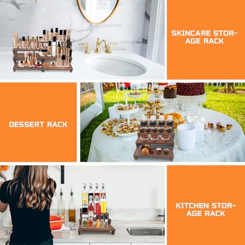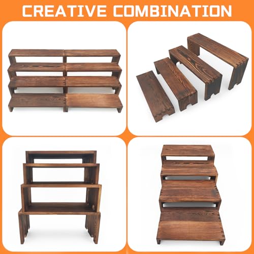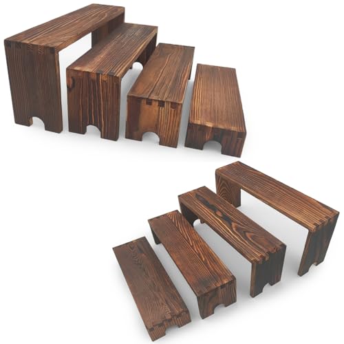 FCVEIDO - حامل خشبي كبير للعرض من اف سي فيدو، 8 قطع، رفوف خشبية للديكور، حامل كب كيك، منظم للعطور والحلوى (بني فحمي)