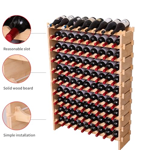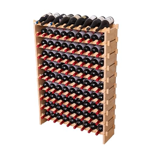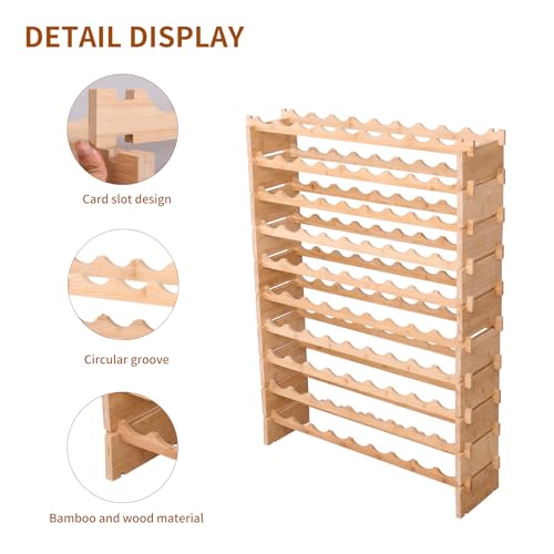 fcxagy - رف نبيذ خشبي قائم بذاته من خشب الخيزران قابل للتكديس من اف سي اكس ايه جي واي، مبرد نبيذ 72 زجاجة و90 زجاجة (90 زجاجة)