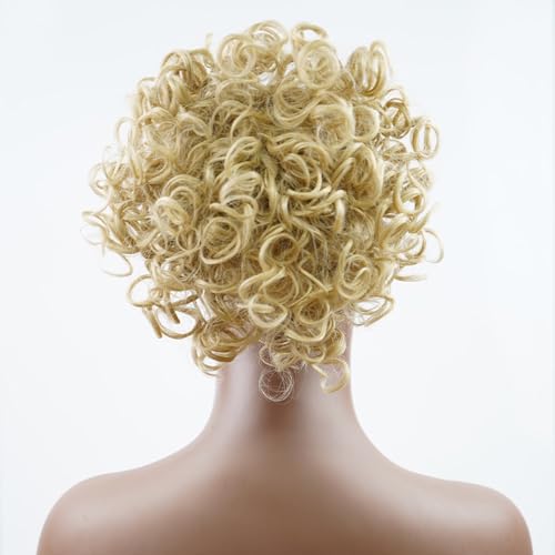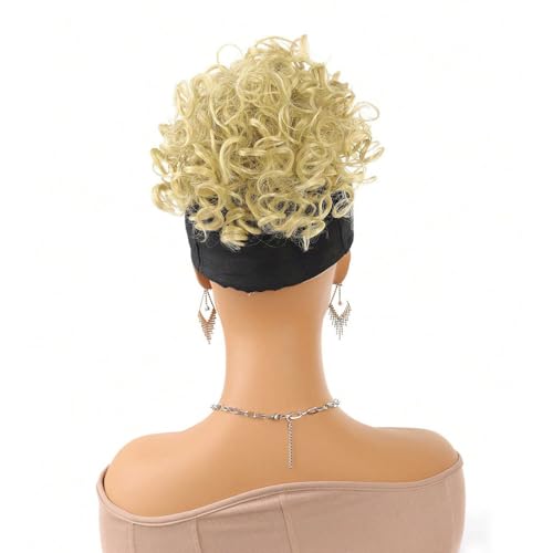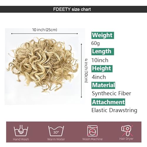 FDEETY - وصلة شعر لعمل تسريحة الكحكة الفوضوية أو ذيل الحصان القصير من فديتي، وصلات شعر مستعار صناعي مموج ومجعد برباط سحب للنساء (لون أشقر)