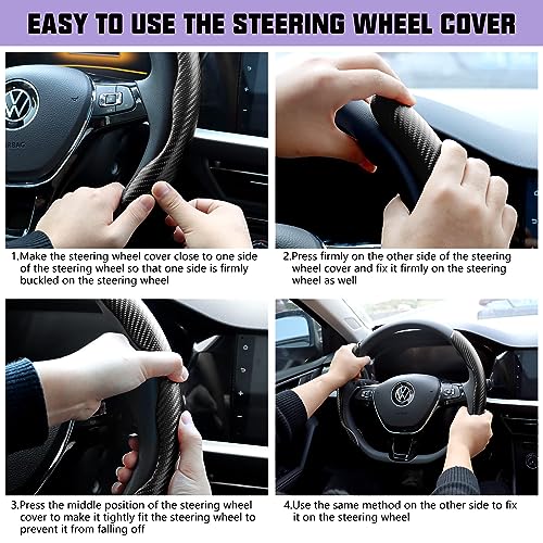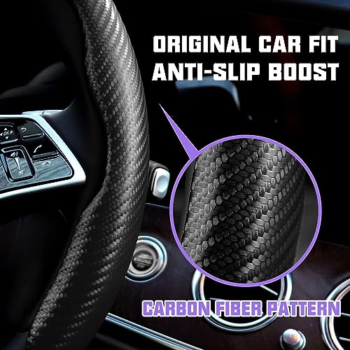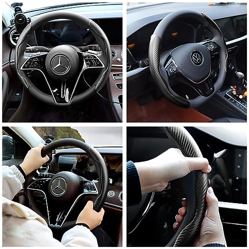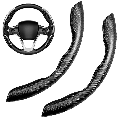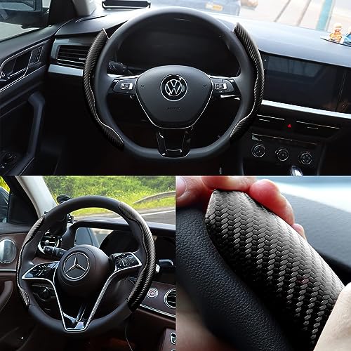 FDGDFG - غطاء طارة دركسيون للسيارة مضاد للانزلاق من قطعتين، غطاء طارة دركسيون للسيارة العالمي لسيارات الرجال / الفتيات، غطاء طارة دركسيون مريح لملحقات قيادة السيارة والشاحنات (الياف كربونية اسود)