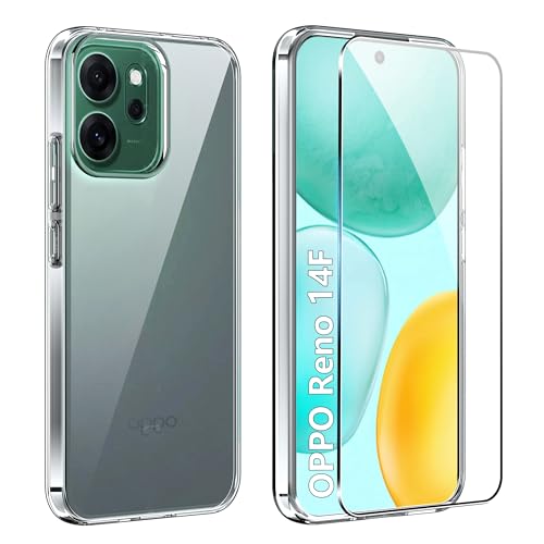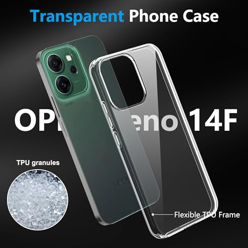 FDHYFGDY - جراب حماية من اف دي اتش واي اف جي دي واي لموبايل اوبو رينو 14F + 1 × طبقة واقية، مضاد للاصفرار والصدمات، جراب حماية من البولي يوريثين الحراري فائق النحافة وناعم - شفاف