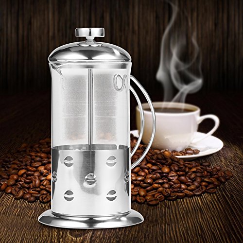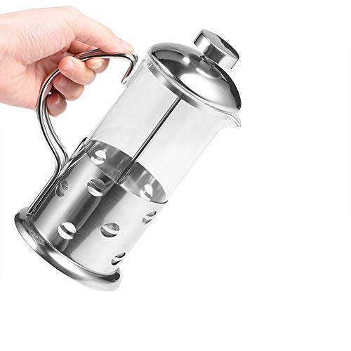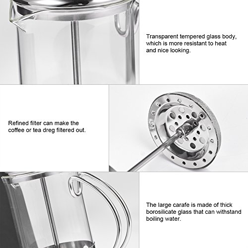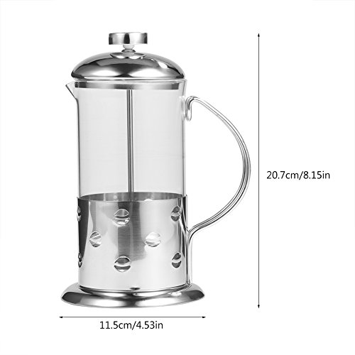 Fdit - إبريق قهوة فرنسي مع إطار ومقبض وغطاء من الفولاذ المقاوم للصدأ من افديت لماكينة تحضير القهوة الفرنسية بفلتر شفاف، 600 مل