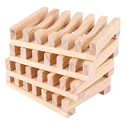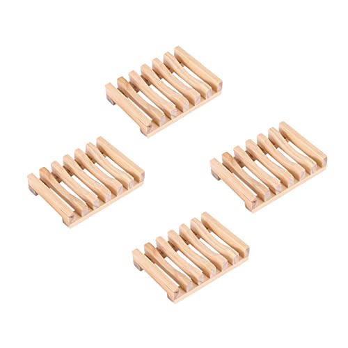 FDSF - حامل صابون خشبي من فايمي مكون من 4 قطع، حامل صابون خشبي طبيعي مستطيل للمطبخ والحمام واسفنجة التنظيف والصابون