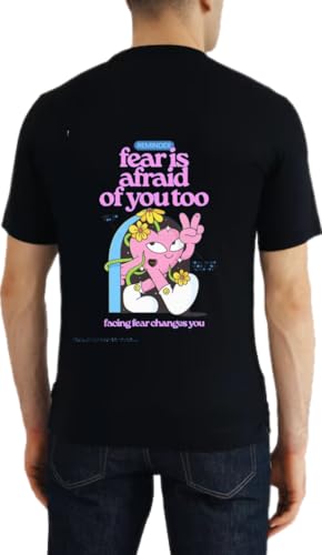 Generic - تيشرت بظهر خلفي مطبوع بعبارة «fear is afraid of you too » أسود