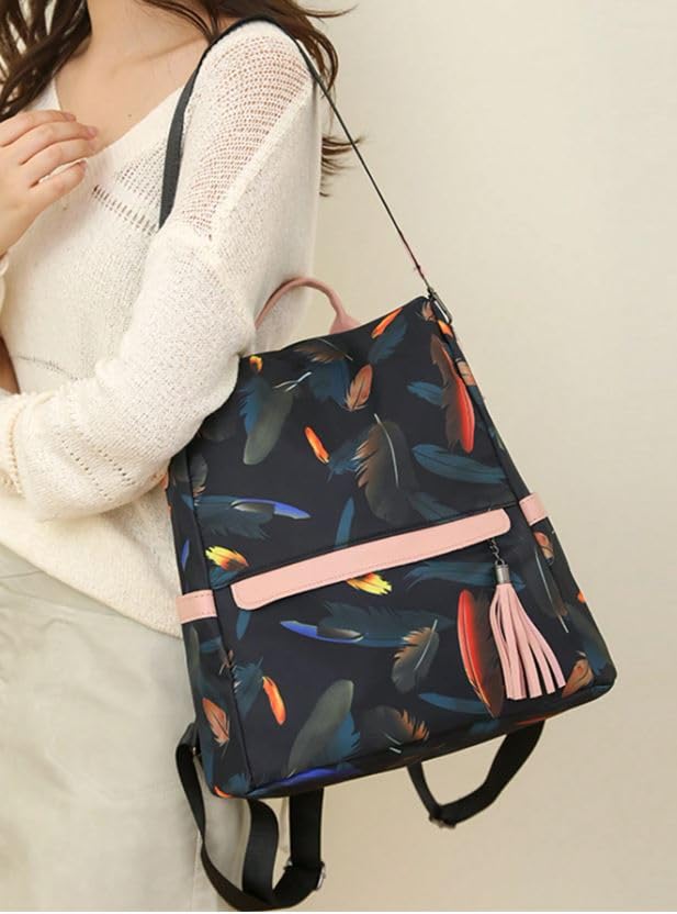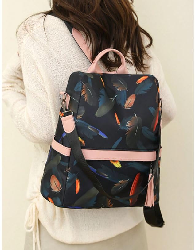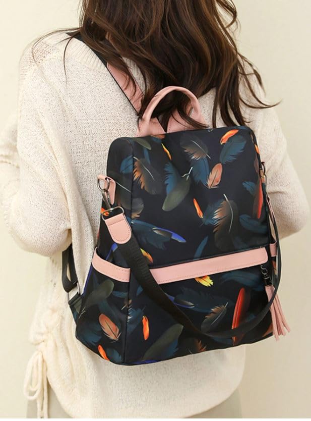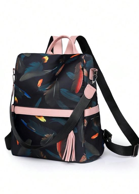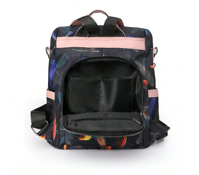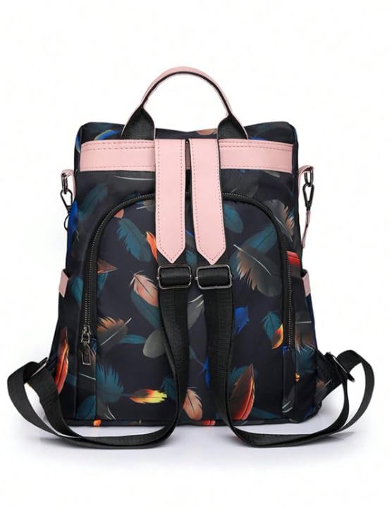 Generic - شنطة ظهر بنقشة ريش وبتصميم سعة كبيرة للنساء