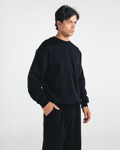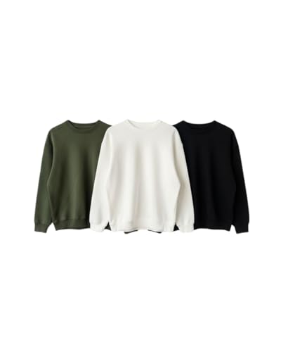 Generic - سويت شيرت رجالي بمقاس كبير - 100% قطن ثقيل الوزن برقبة دائرية ضيقة للشتاء من فيذرز - عبوة من 3 قطع