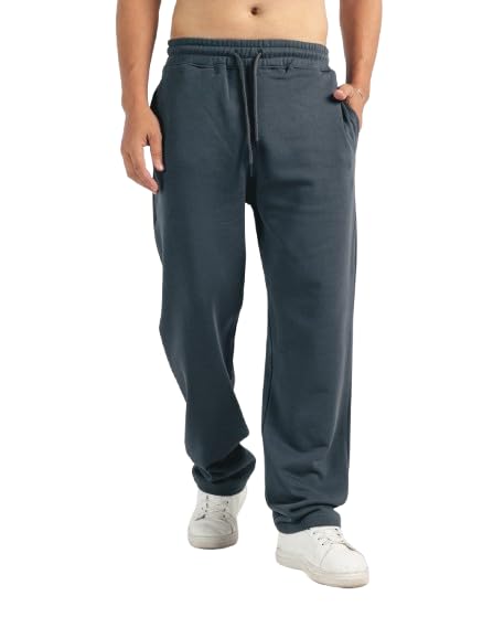 Generic - بنطلون رياضي قطني بقصة مستقيمة للرجال مع جيب خلفي من فيذرز