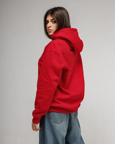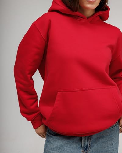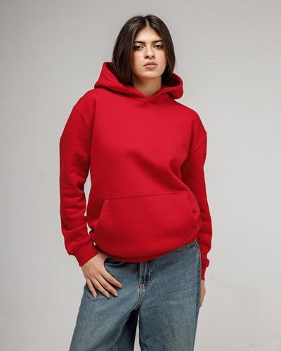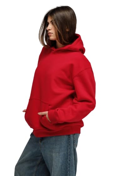 Generic - سويت شيرت بغطاء رأس للشتاء مقاس كبير مصنوع من قطن ثقيل الوزن بنسبة 100% للنساء من فيذرز