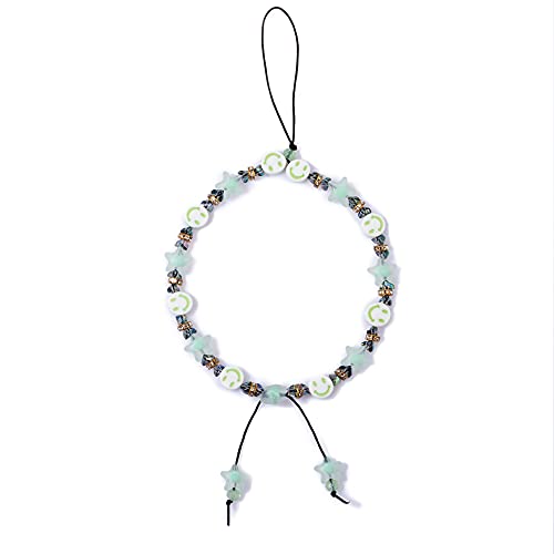 Fechdoo - تعليقة موبايل عصرية خفيفة الوزن للنساء، سلسلة خرز لسوار الجوال، اكسسوارات سلسلة الجوال على شكل نجمة لطيفة، لؤلؤ اكريليك، كريستال