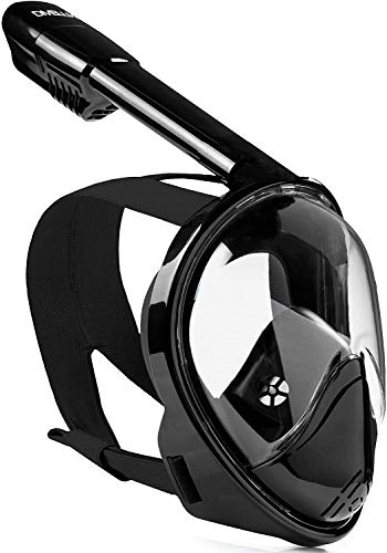 FEELING MALL - قناع غطس للاطفال والكبار من فيلينج مول - قناع غوص وغطس لكامل الوجه اصلي مع رؤية بانورامية 180 درجة - انبوب تهوية اطول، مانع لتسرب الماء، ومضاد للضباب (اسود، مقاس L-XL (مقاس الكبار))