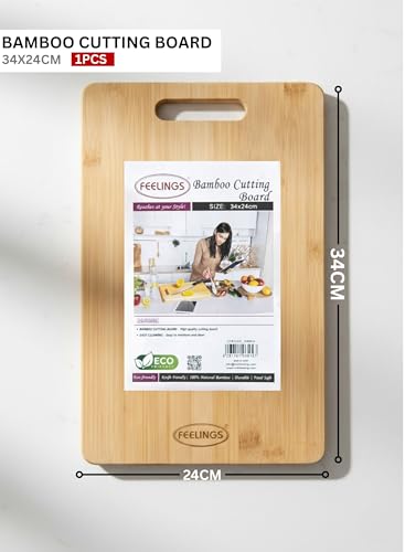 Feelings - فيلينغز لوح تقطيع مستطيل من الخيزران - 34 × 24 × 1.8 سم | لوح تقطيع | لوح تقطيع | لوح تقطيع خشبي | لوح تشاركوتيري