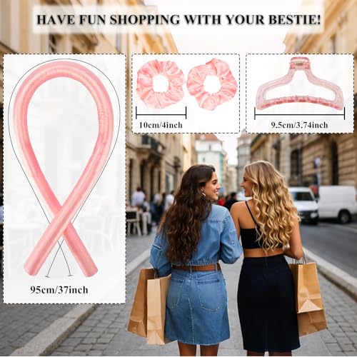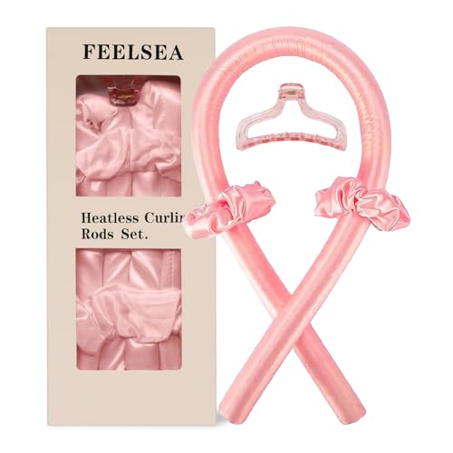 FEELSEA - أداة تجعيد الشعر بدون حرارة، أداة تجعيد الشعر بدون حرارة مع مشبك شعر مخلبي، بكرات شعر ناعمة طبيعية لتصفيف الشعر أثناء النوم طوال الليل من فيلسي، (لون وردي - M)