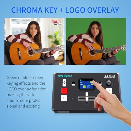 Feelworld - فيل وورلد محول فيديو اتش دي ام اي، محول مزج فيديو متعدد الكاميرات بشاشة تعمل باللمس، 4 منافذ HDMI 2.0 تحكم PTZ USB 3.0 بث سريع L1 بلس